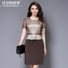 中年女装妈妈装甘甘的世界大码气质修身夏装新款蕾丝礼服连衣裙夏