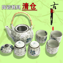 功夫茶具茶杯 日式系列陶瓷功夫茶具竹节提梁壶壹壶五杯陶瓷套装