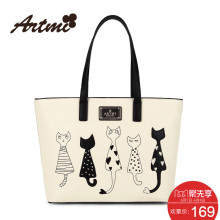 Artmi阿特蜜春夏新款个性猫猫单肩包趣撞色单肩手提包包韩版黑白