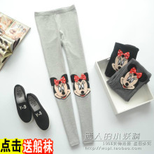 春秋季显瘦外穿九分小脚裤子 膝盖刺绣可爱米奇卡通打底裤女薄款