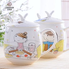 创意情侣水杯对杯 杯子陶瓷 骨瓷杯 陶瓷杯 马克杯带盖带勺咖啡杯