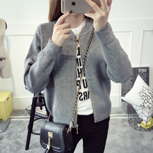 韩版圆领长袖拉链短外套上衣开衫毛衣女装针织衫2017春秋季新款