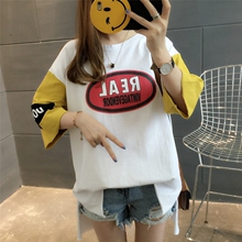 短袖T恤女2017夏装新款宽松显瘦韩版圆领撞色简约学生体恤上衣潮
