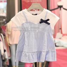 celden 韩国专柜代购童装 夏季女童短袖假两件T恤儿童纯棉打底衫