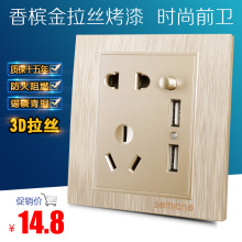 86型香槟金墙壁 带双usb多功能开关插座面板 5五孔usb手机充电