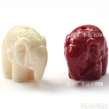 白珊瑚粉压雕刻卷鼻小象 吉祥 招财大象 红 DIY饰品材料散珠配件