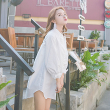 九茵2017年春季时尚百搭韩版中长款POLO领衬衫宽松大码白衬衣