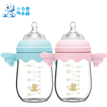 小白熊 宽口径婴儿奶瓶 宝宝玻璃奶瓶 配硅胶奶嘴大容量奶瓶