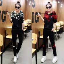 2017秋季新款迷彩服女套装户外运动休闲两件套军旅服大码连帽卫衣