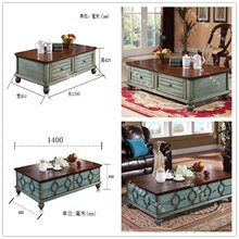 复古客厅茶几美式做旧方形茶几蓝色地中海 欧式仿古新古典咖啡桌