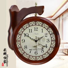 欧式客厅挂钟仿古双面静音大号实木两面石英钟表田园创意个性时钟