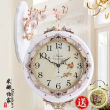 欧式仿古双面客厅挂钟大号静音时尚田园简约创意现代石英时钟