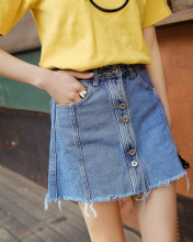 2017春夏新款韩版高腰单排扣牛仔裙半身裙百搭a字短裙包臀裙女潮
