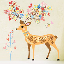 可移除三代墙贴 彩色鹿 客厅卧室电视墙 餐厅背景家装贴纸墙饰