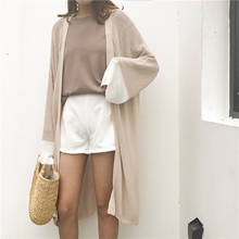 EKOOL 长款冰丝针织开衫披肩 韩版夏季简约宽松防晒衫女外套