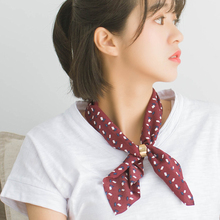 御绣天下 韩国细长领巾女春秋夏季文艺百搭装饰波点金属扣小丝巾
