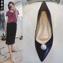 B家正版 新韩版珍珠尖头平底平跟单鞋 女休闲真皮牛筋底复古瓢鞋