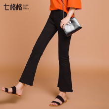七格格 2017春装新款 复古纯色修身微喇喇叭裤九分裤休闲裤女X882
