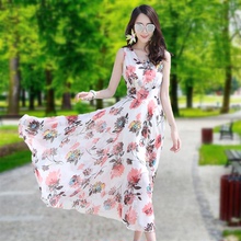 2017女土新款修身显瘦连衣裙飘逸仙裙子17年爆款雪纺连体长裙女夏
