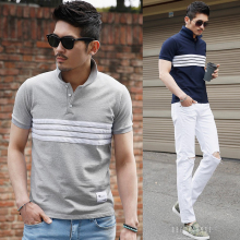 韩国代购男装2017夏季新款短袖T恤条纹商务休闲都市潮男士POLO衫