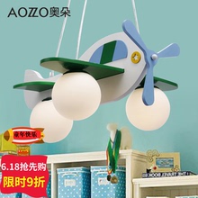 奥朵卡通创意儿童房灯吊灯可爱木艺飞机灯美式简约男孩女孩儿童灯