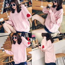 2017春装新款韩版宽松套头爱心刺绣学生长袖薄款卫衣女打底上衣潮