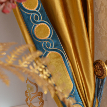 豪华大气欧式客厅窗帘定制美式田园黄色高精密遮光卧室窗帘布加厚