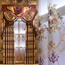 欧式豪华客厅高档美式风格新华隆金皮水溶绣花窗帘精致彩纱绣花纱