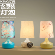 北欧简约客厅卧室床头装饰台灯创意个性玻璃布艺灯罩书房书桌台灯