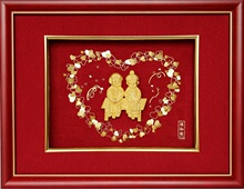 幸福娃娃金箔画 结婚礼物送闺蜜朋友定制实用创意家居婚庆摆件