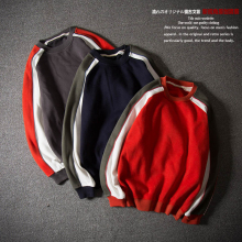 冬装原创复古美式拼色圆领宽松加绒卫衣潮日系百搭休闲套头外套男