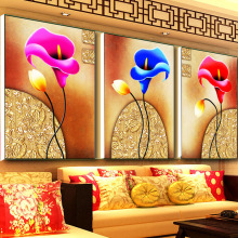 5d点钻半钻点钻石十字绣新款魔方圆钻贴钻客厅马蹄莲花三联组合画