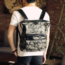 潮流迷彩男双肩包 潮流撞色背包 复古休闲男女背包学生书包旅行包