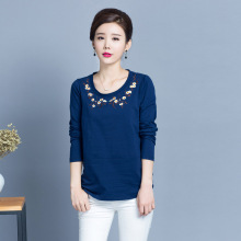2017春装新款女t恤打底衫中年轻妈妈装长袖宽松大码圆领纯棉上衣
