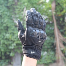 摩托车手套真皮 碳纤维赛车短款手套夏 四季防护防寒防摔骑士手套