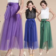 夏季百搭幻彩大摆网纱半身裙 蝴蝶结系带仙女裙 多色半身大摆裙