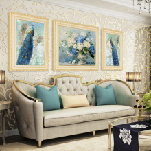 心泊客厅沙发背景墙画欧式装饰画三联美式有框画餐厅壁画挂画孔雀