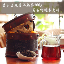 云南普洱茶叶 宫廷普洱茶熟茶400g 木皮桶 散茶 陈年普洱