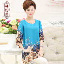 棒约美中老年女装夏季新款妈妈装雪纺衫40-50大码中年女装T恤上衣