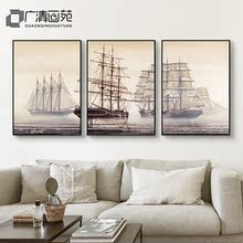 北欧风格客厅装饰画现代简约沙发背景墙三联画壁画卧室挂画帆船