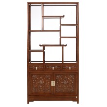 百年印记 两门雕花多宝格博古架实木 现代简约老榆木 书房组合