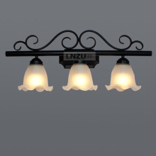 欧式三头铁艺壁灯玻璃镜前灯卫生间门前走廊壁灯简欧仿古白色壁灯