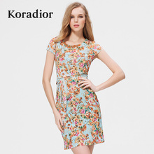 Koradior/珂莱蒂尔正品韩版夏季修身百搭时尚包臀网纱印花连衣裙