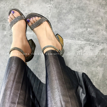 ALEX SARA 2017 春夏新款 真皮反绒粗跟一字带凉鞋防水台增高女鞋