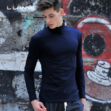 LLANNE春季高领打底衫男士纯色双丝光棉体恤宽松半高领长袖t恤男