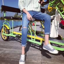 2017夏季新款男士破洞牛仔裤男九分裤薄款修身小脚韩版潮流裤子男
