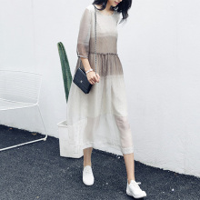 飘逸渡假连衣裙中袖真丝长款裙子外贸原单女装欧美货尾单剪标出口