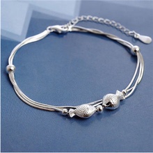正品S990纯银亲吻鱼手链女韩版时尚多层简约接吻鱼足银手链礼物