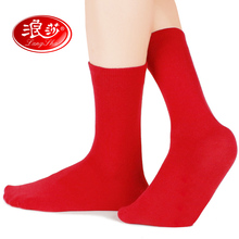 浪莎袜子 男士女士大红本命年踩小人提花棉袜 袜子男短袜 女棉袜
