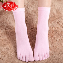 浪莎女士五指袜女袜中筒袜秋冬款棉五趾袜子女潮短袜